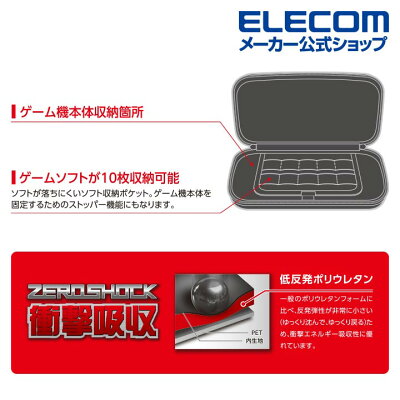 エレコム Nintendo Switch Lite 用 ZEROSHOCK ハード ポーチ ニンテンドー スイッチ ライト ゼロショック 衝撃吸収 保護 ケース ブラック GM-NSLZSHCBK