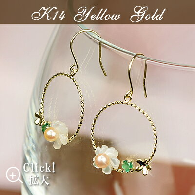 14金 パールピアス 白蝶貝 エメラルドピアス (両耳用) 14k K14 ゴールド 淡水パール 6月 5月 誕生石 真珠 フックピアス 送料無料 あす楽 レディース 女性用 誕生日プレゼント 母 金属アレルギー 安心 ブライダル pearl コンビニ受取対応商品 初売り
