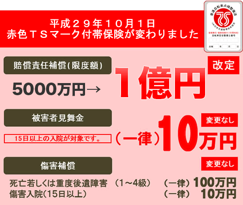 TS保険 TS傷害保険【万が一のための自転車保険。賠償保険限度1億円で安心の赤色TSマーク付帯保険】