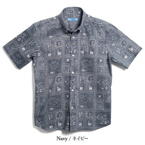 アイテム説明 スモーキーカラーがキモ、旅感漂うアンニュイシャツ闘牛・シーサー・月桃といった典型的な沖縄モチーフも、切手のような縁取りを施して散りばめるとこんなにもムーディーに。